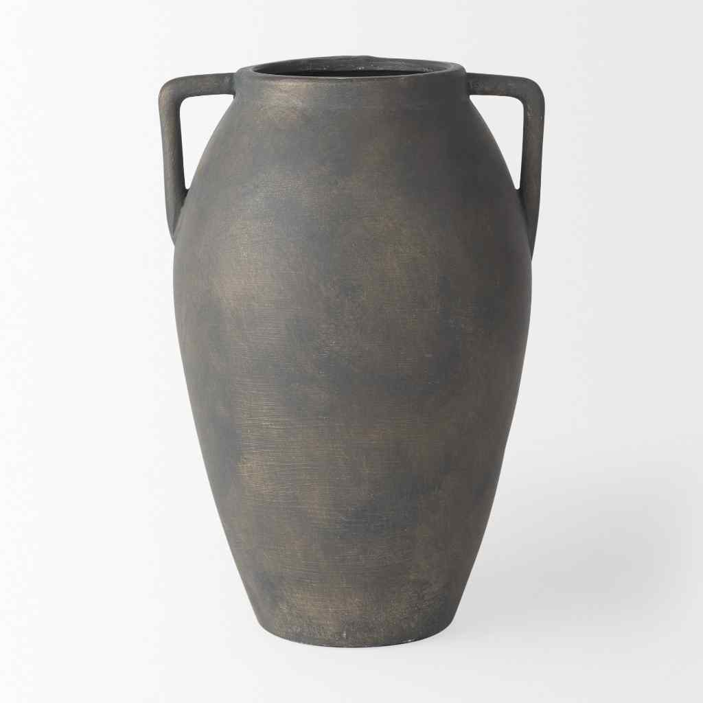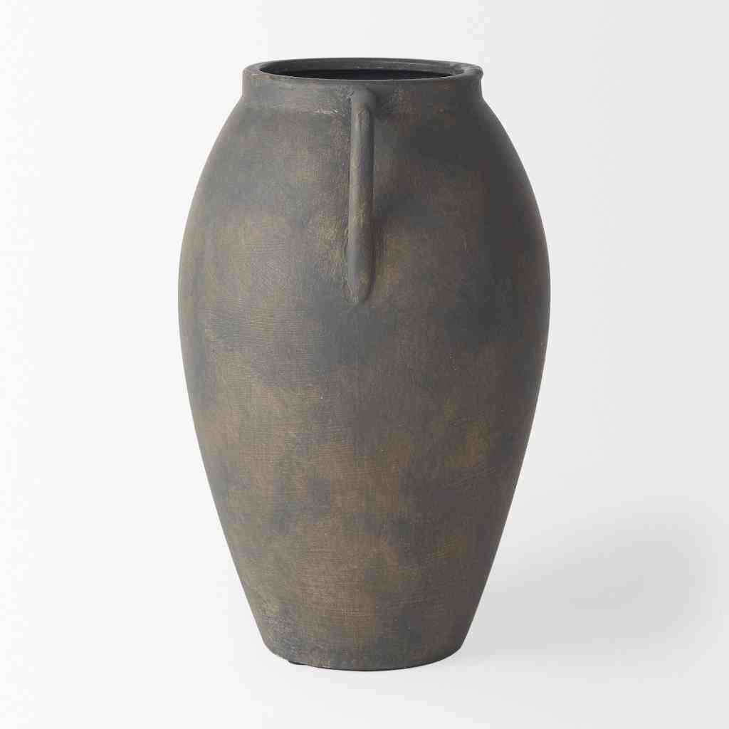 A contemporary vase with sharp, triangular ears in a deep, earthy matte brown finish.