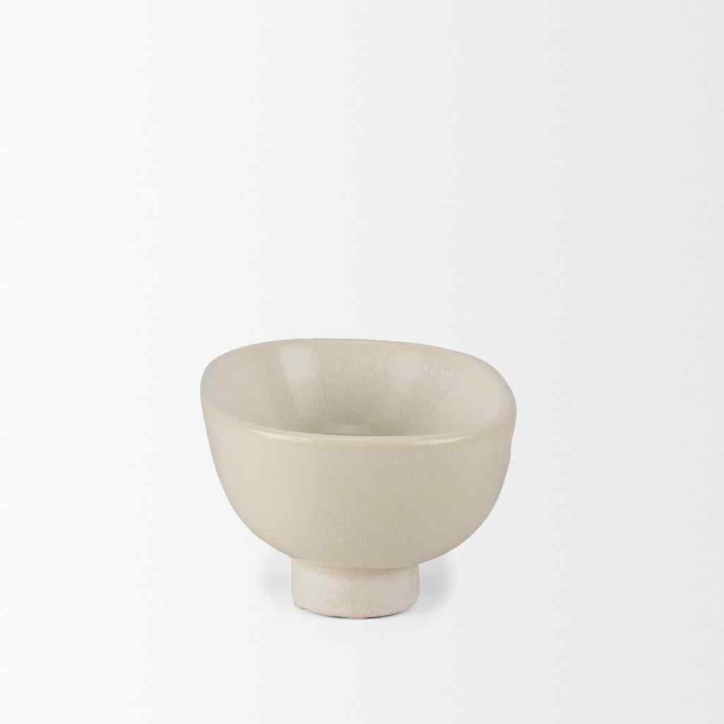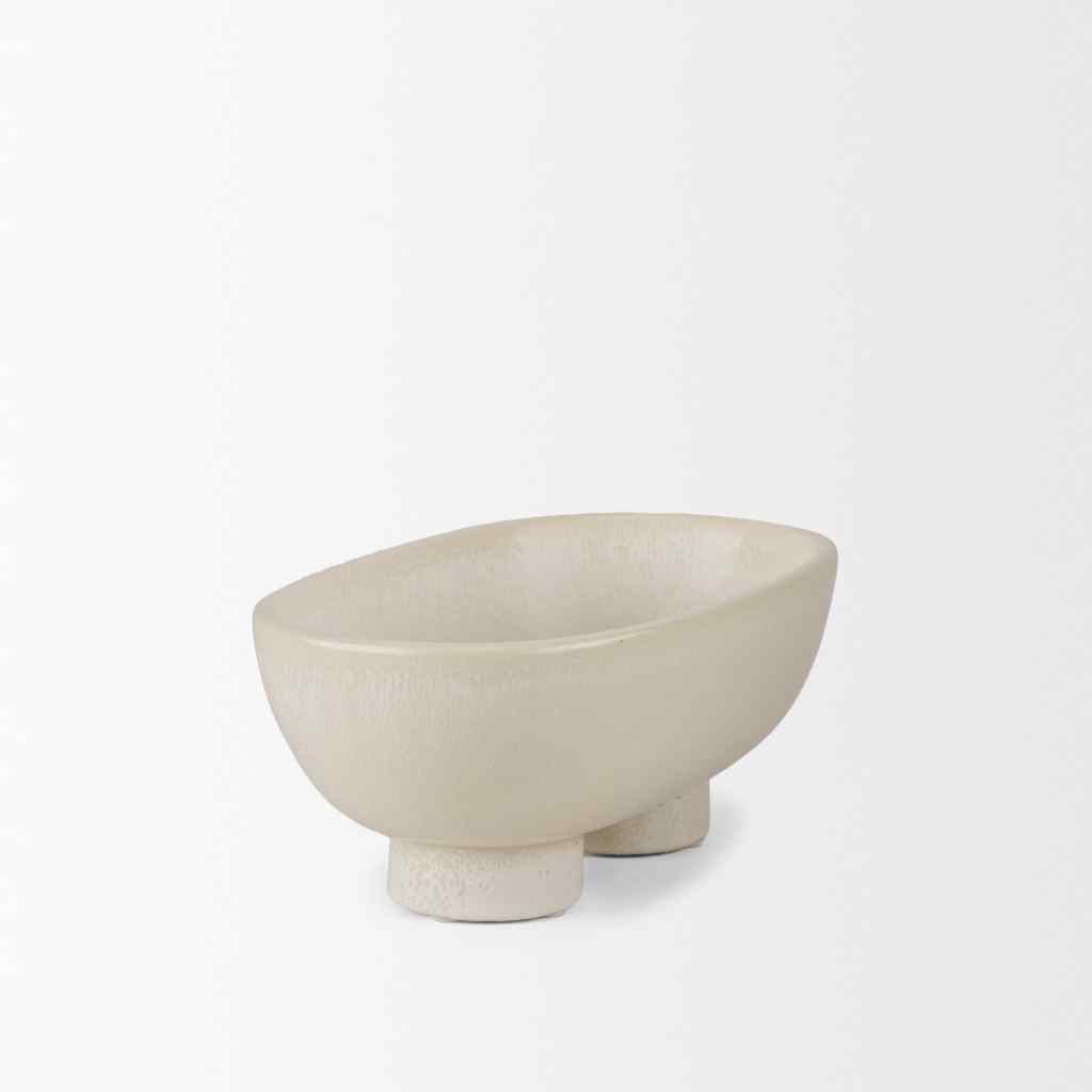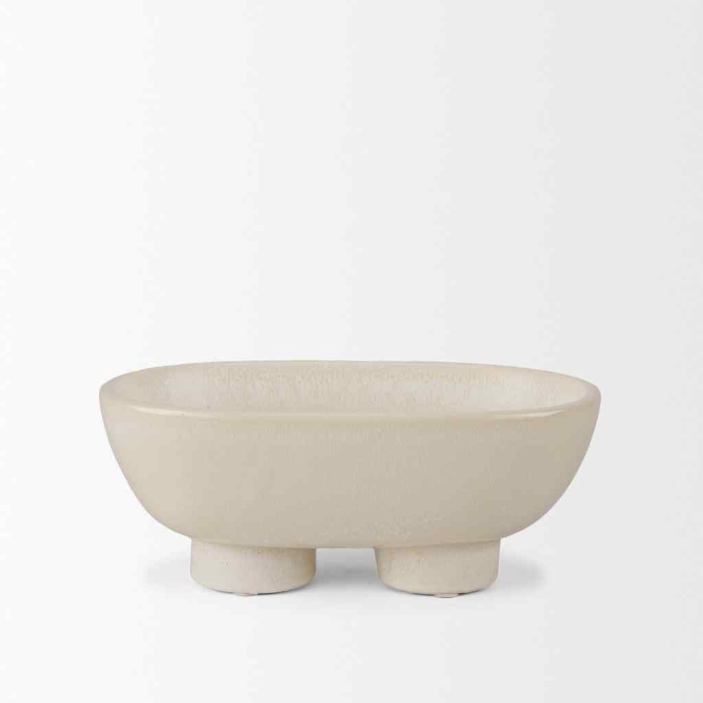 Tyren Cream Glazed Decorative Oblong Ceramic Bowl