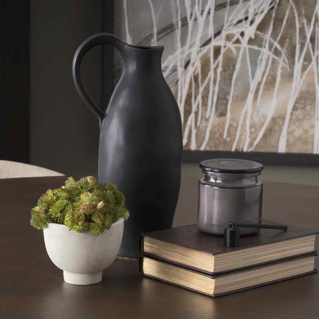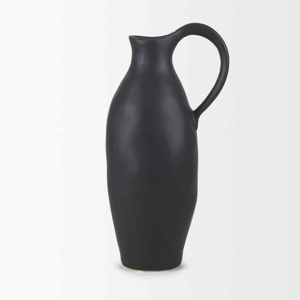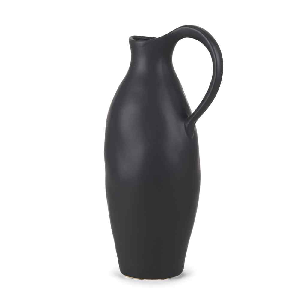 Valora is a tall jug-style vase in a smooth, matte black finish.
