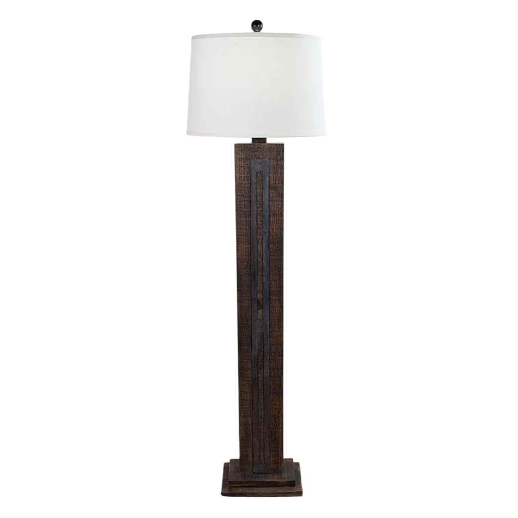 All Rough Sawn Floor Lamp W/ Tarnished Metal Accent